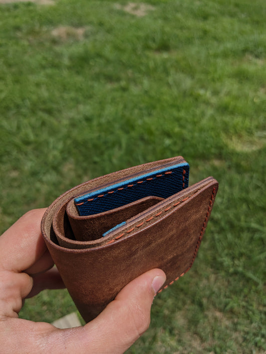 McKinley Bifold - Walnut & Blue Hatched w/ Copper